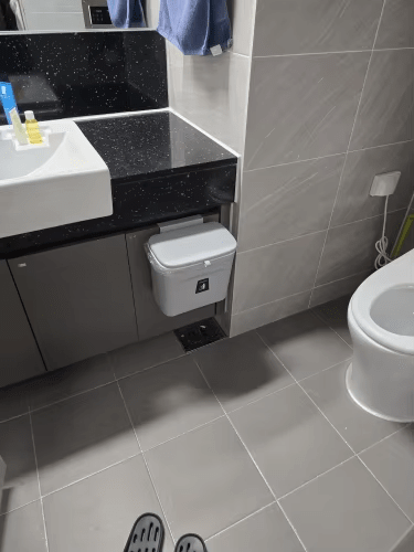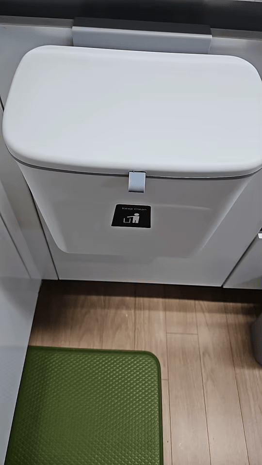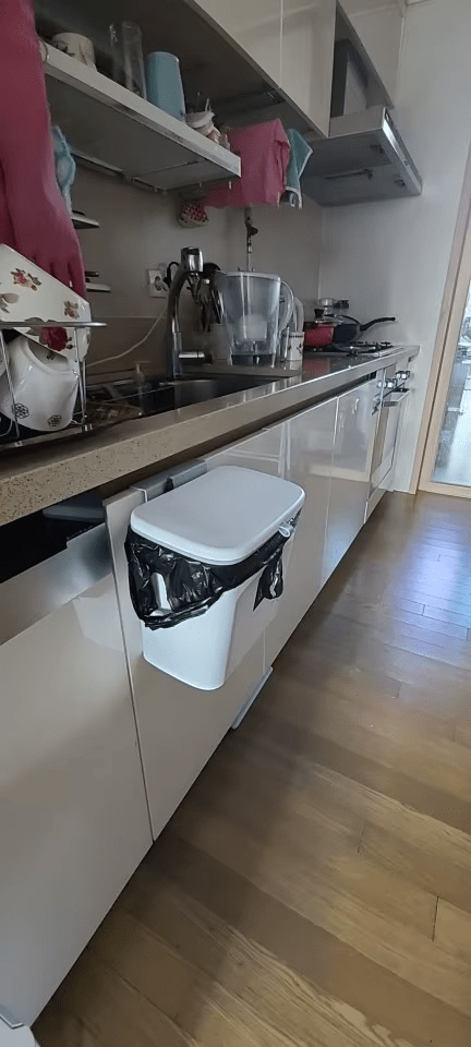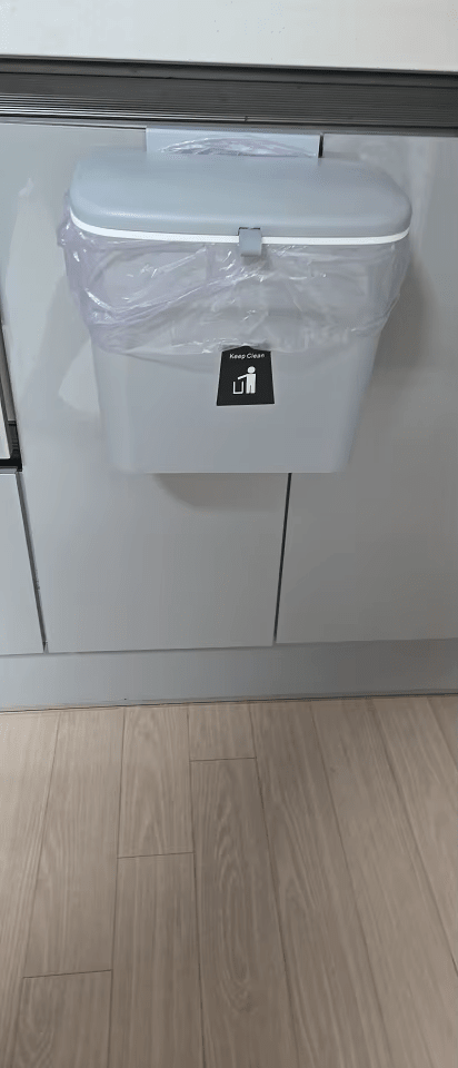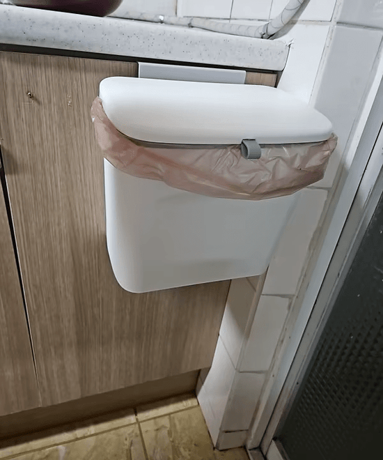 "Dieser hängende Mülleimer hat meine Küche verwandelt! Keine schlechten Gerüche mehr und ein unglaublicher Platzgewinn."