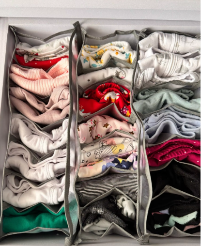 Diese Boxen sind ideal, um Ihre Unterwäsche, Socken, Leggings, T-Shirts, Pyjamas oder dünne Hosen zu organisieren. Jede Kategorie hat ihren eigenen Platz, je nach Ihren Wünschen.