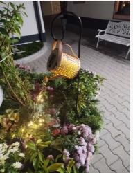 温かく幻想的な雰囲気をあなたの庭やテラスにこのじょうろの形をしたランタンで作り出しましょう。このランタンは星の雨のように柔らかい光を放ちます