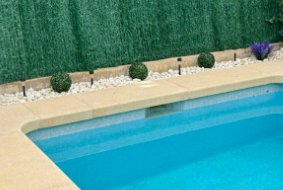 Nei, ingen vedlikehold er nødvendig. Det forblir grønt og rent uten vanning eller beskjæring.