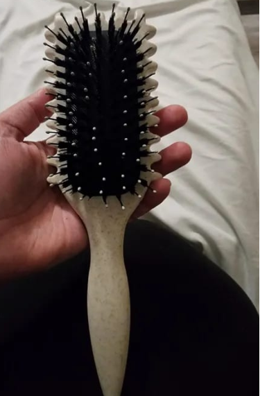 Ik heb zeer krullend haar type 3B/3C. Deze borstel respecteert de krul, breekt de punten niet en helpt zelfs om mijn verzorging goed te verdelen. Zeer goed hulpmiddel.